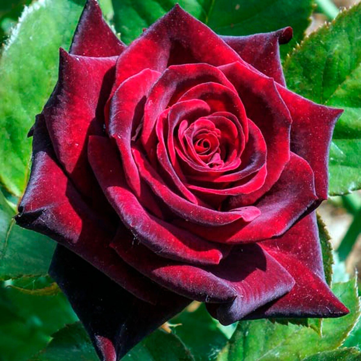 Квітки: Великі (8-12 см), густомахрові (до 50 пелюсток), класичної келихоподібної форми з високим центром. Пелюстки хвилясті, темно-червоні з оксамитовим чорним відтінком.