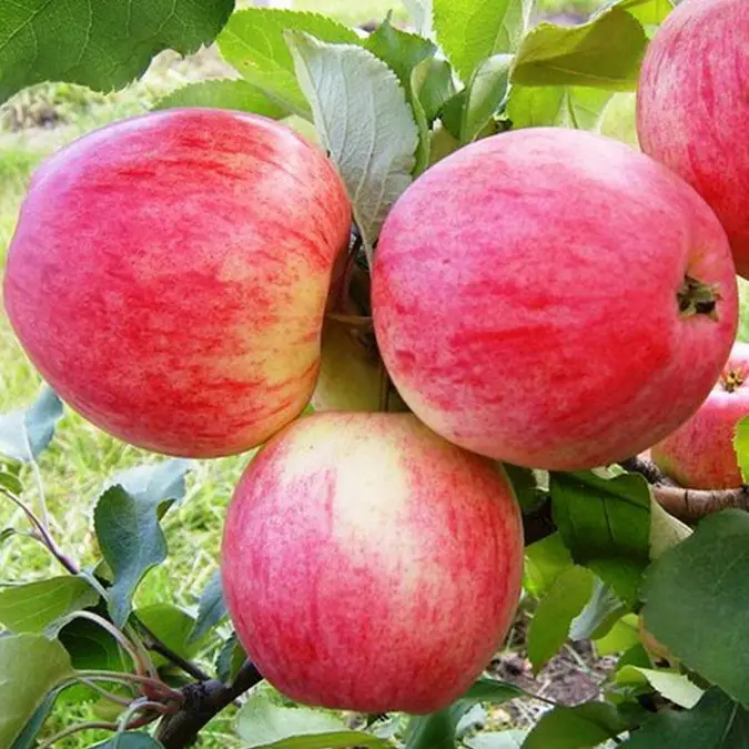 Плоди зеленувато-світлі злегка видовжені з червоним рум'янцем по всьому плоду. Біло-кремова м'якоть соковита, приємного кисло-солодкого смаку, смачна, під шкірою стиглі плоди набувають рожевого кольору. Яблука великі масою 140-200г, дуже гарні. Відноситься до надійних сортів, адже яблук дерево не шкодує і стабільно щороку плодоносить.